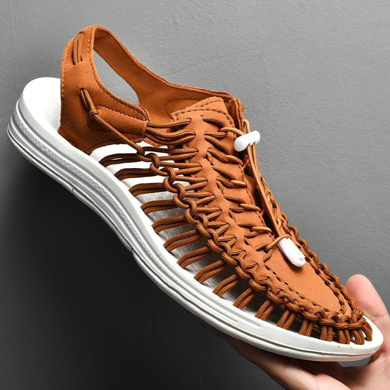 Sandalele bărbătești Round Cord sunt o opțiune de încălțăminte elegantă, confortabilă și versatilă pentru fiecare bărbat. Aceste sandale au un vârf rotund și o închidere superioară confortabilă cu cordon pentru a fi ușor de pus și scos. Talpa amortizată și talpa ușoară oferă confort și susținere de lungă durată. Perfecte pentru plajă, piscină sau purtare zilnică, aceste sandale vor fi cu siguranță un element esențial al verii.