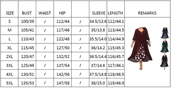 1 * Rochie neregulată cu două piese din sifon fals pentru femei cu jumătate de mânecă