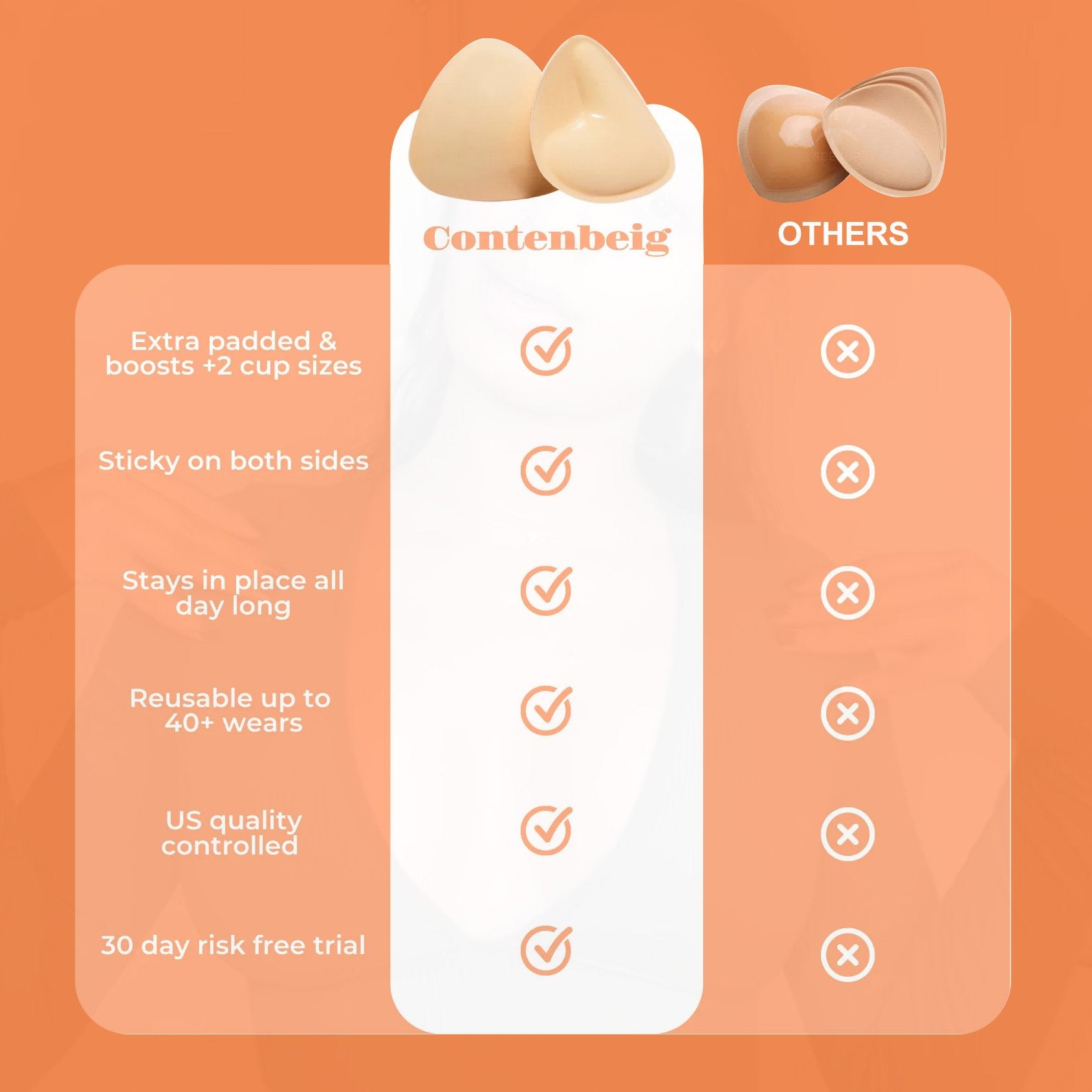 Vedeți cum inserțiile de stimulare Bumbas ridică până la două mărimi de cupă și mențin țesătura în poziție.