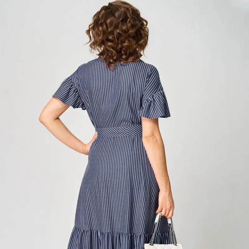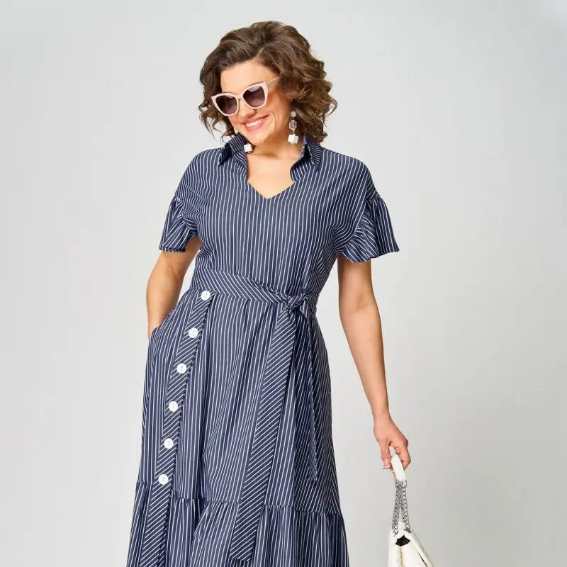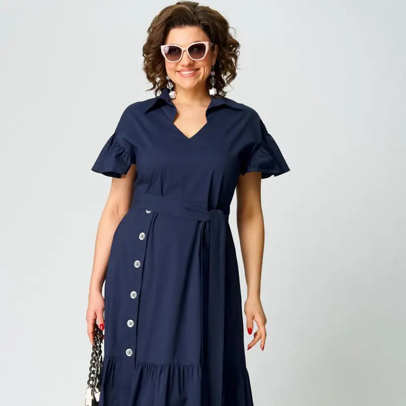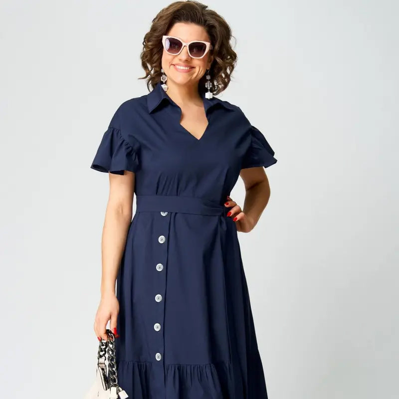 1 x Rochie de cămașă cu mânecă scurtă cu rever și tiv cu volane