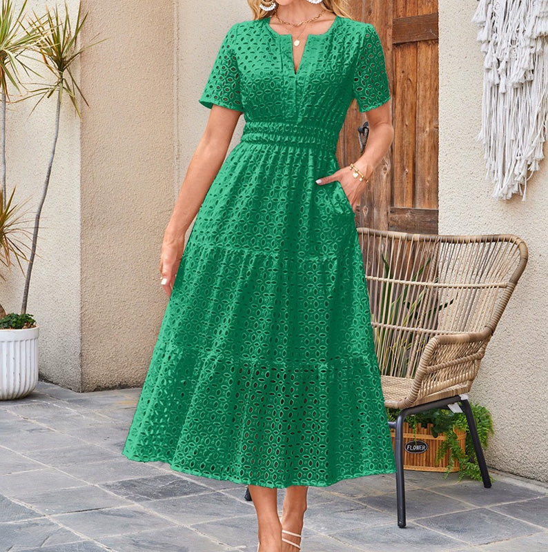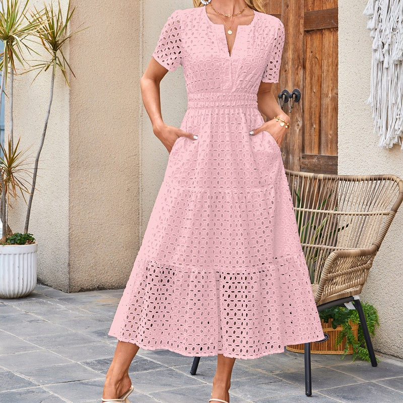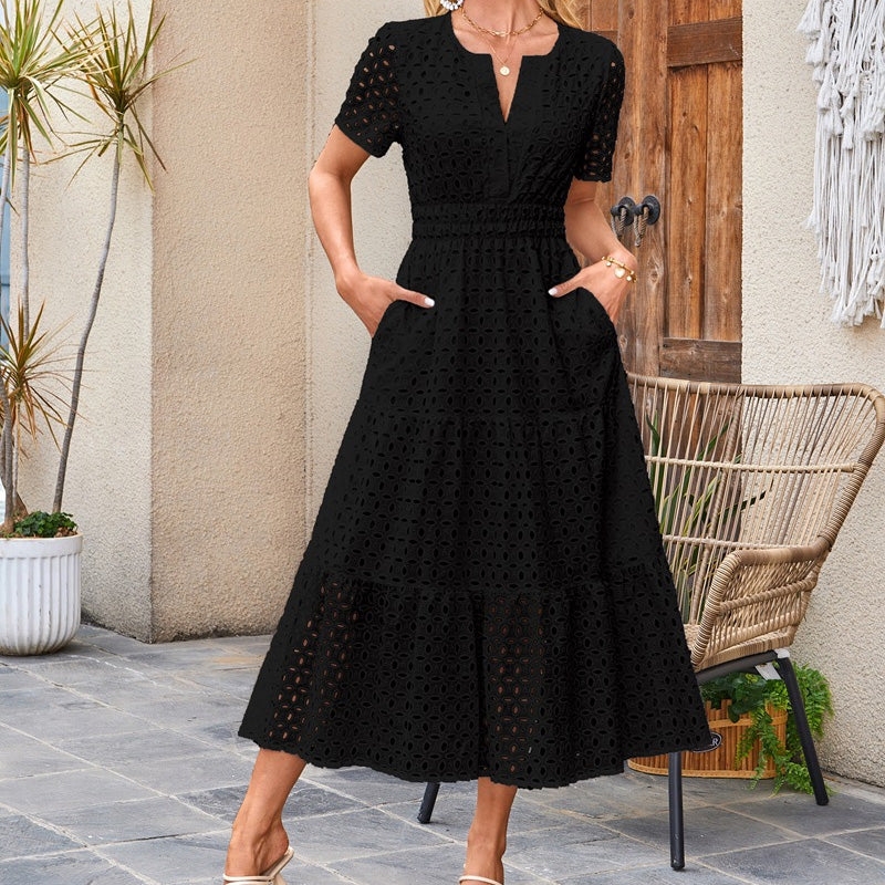 Pachet inclus: 1 * Rochie elegantă pentru femei cu gât V Eyelet Flowy