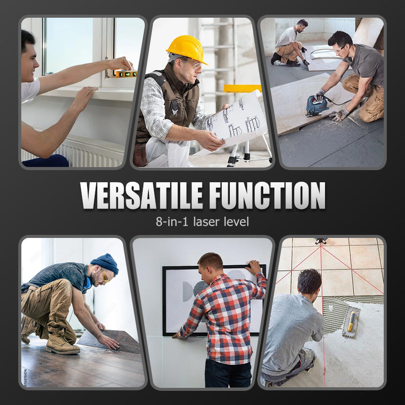 LASER DUBLU ȘI ECRAN LED: Echipat cu două linii laser și un afișaj LED mare și clar pentru o vizibilitate luminoasă și în timp real a datelor, îmbunătățește eficiența muncii în interior sau în exterior, în orice condiții de iluminare.