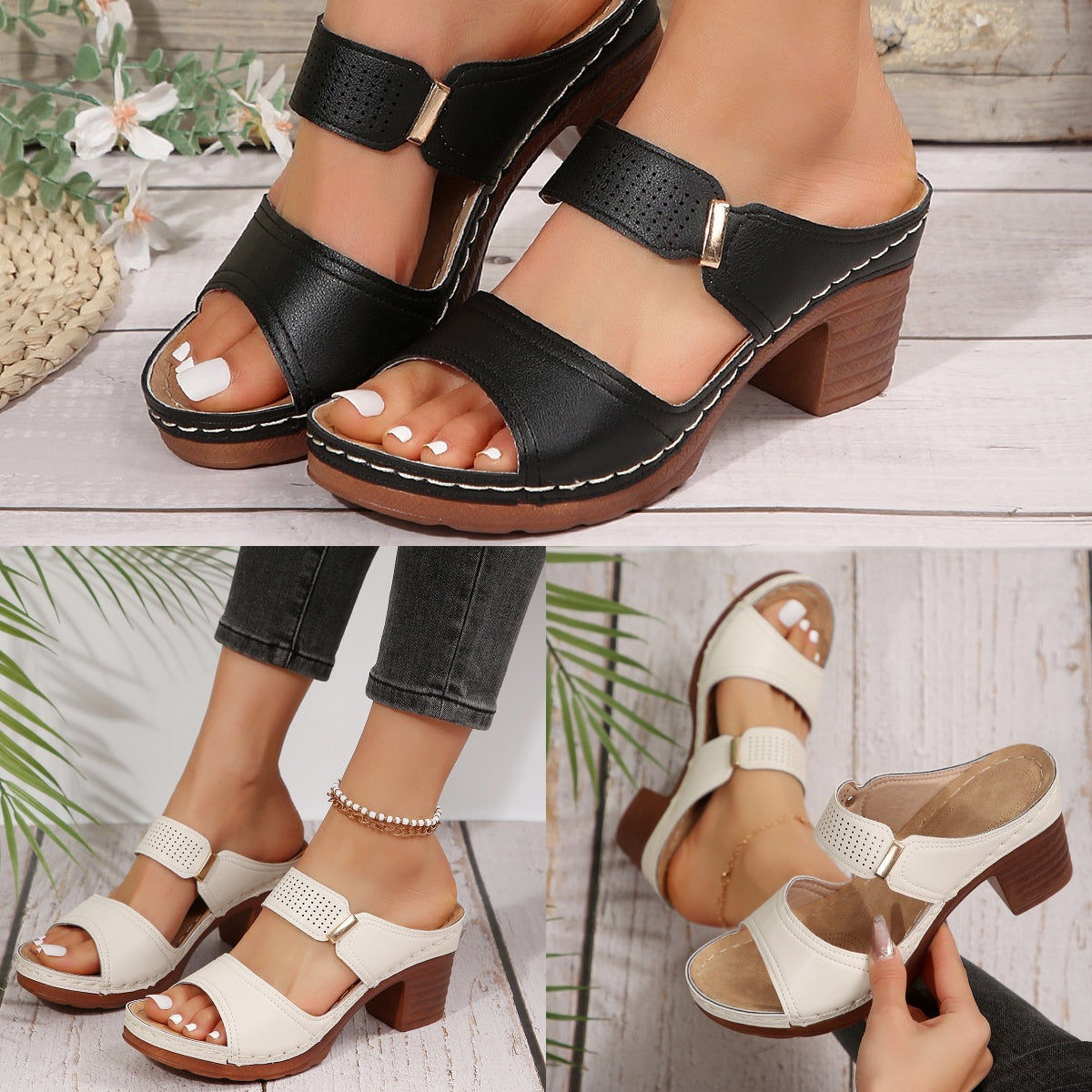 Pachetul include: 1 Pereche * Sandale Slip-On pentru femei cu călcâi gros