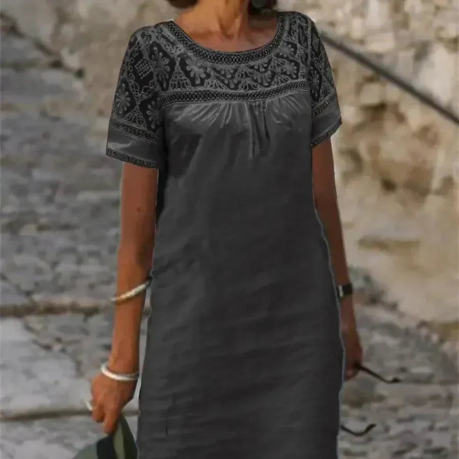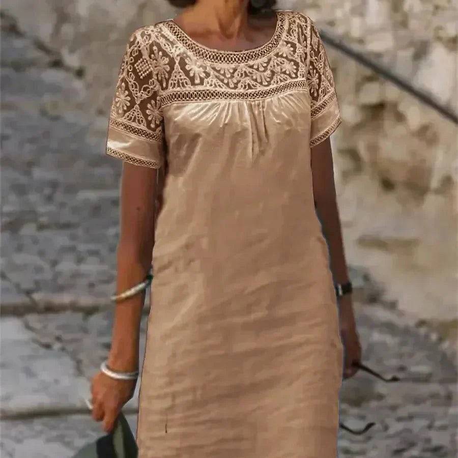 DETALIU PATCHWORK DIN DANTELĂ: Delicatele patchwork din dantelă scot în evidență această rochie, adăugând o eleganță atemporală și o notă feminină ce îmbunătățește orice ținută casual cu un stil natural.