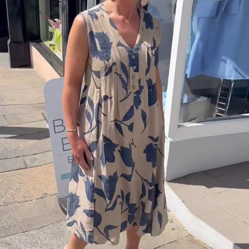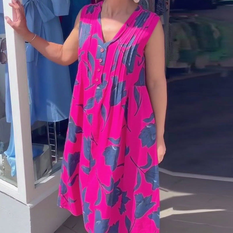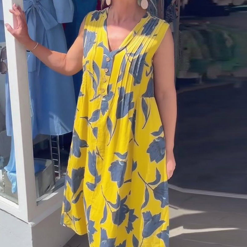 DESEN FLORAL ELEGANT – Această rochie maxi fără mâneci are un desen floral atemporal, perfect pentru evenimente casual. Culorile vibrante și modelul delicat te vor face să ieși în evidență, adăugând o notă elegantă oricărei ocazii.