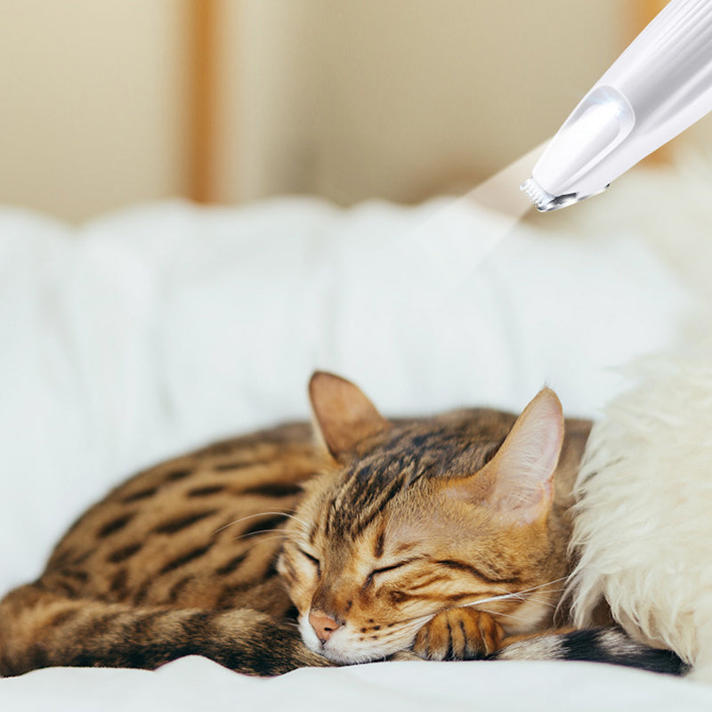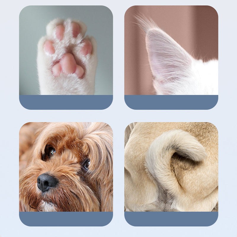 LUMINĂ LED ÎNcorporată -Iluminează zonele greu vizibile, cum ar fi cele dintre pernițele labelor. Această lumină puternică oferă o vizibilitate clară, asigurându-vă că puteți tunde cu precizie și în siguranță, fără a răni accidental pielea delicată a animalului dvs. de companie.