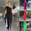 DESIGN ASIMETRIC DESCHIS DE SPALARE - ELEGANȚĂ MODERNĂ CU O ÎNTÂLNIRE: Concepută pentru femeia care îmbrățișează atât structura, cât și fluiditatea, această rochie maxi are o siluetă unică cu un singur umăr. Cu o parte fără bretele și cealaltă drapată într-un șal lung și fluid, aspectul este atât echilibrat, cât și în pas cu moda. Fie la evenimente formale, fie la întâlniri elegante, aceasta oferă eleganță remarcabilă cu ușurință.