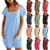 💕Rochie mini cu mânecă scurtă, cu buzunare, gât pătrat, lungime mini, stil liber, ușor de îmbrăcat în sus și în jos