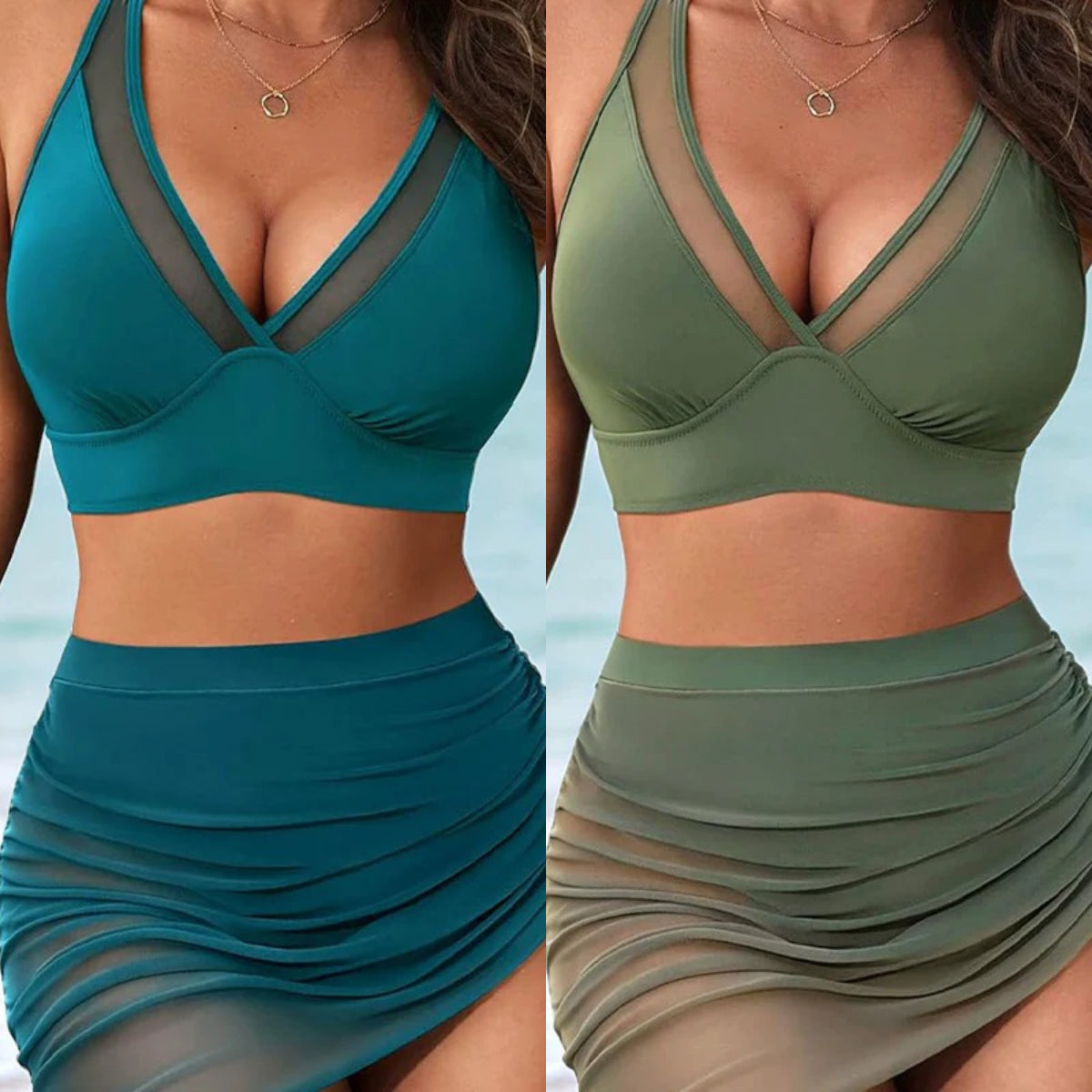 INCLUSIUNI ELEGANTE DIN PLĂCERE PENTRU UN DESIGN TENDENT: Acest set de bikini are detalii subtile din plasă care îi conferă un caracter șic și modern. Accesoriile elegante din plasă pun în valoare designul, făcându-l perfect pentru un look la modă pe plajă sau la piscină.
