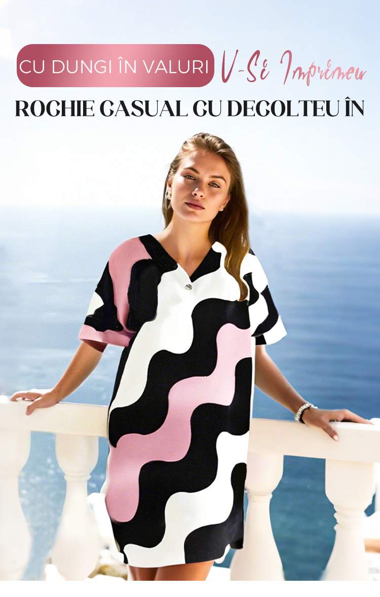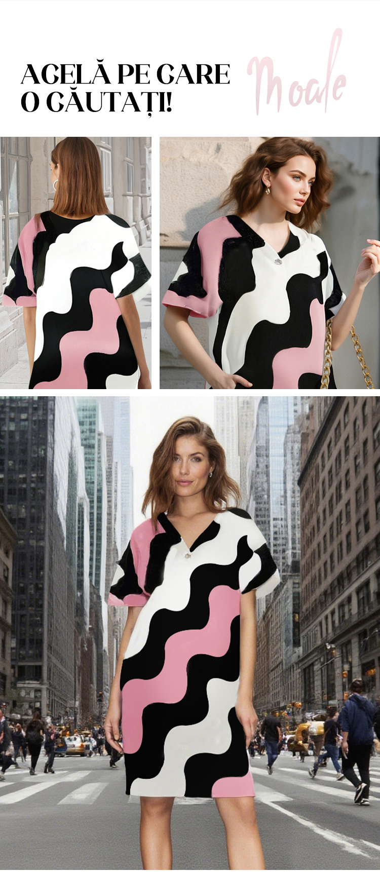 Rochie cu mânecă scurtă cu decolteu V pentru femei
