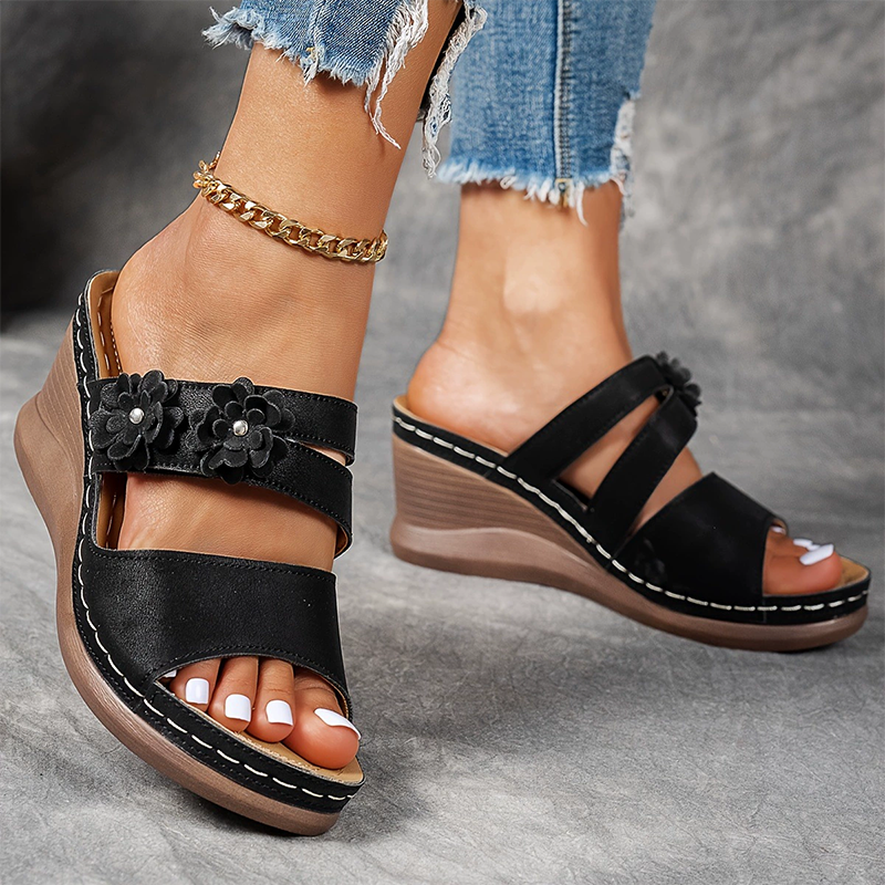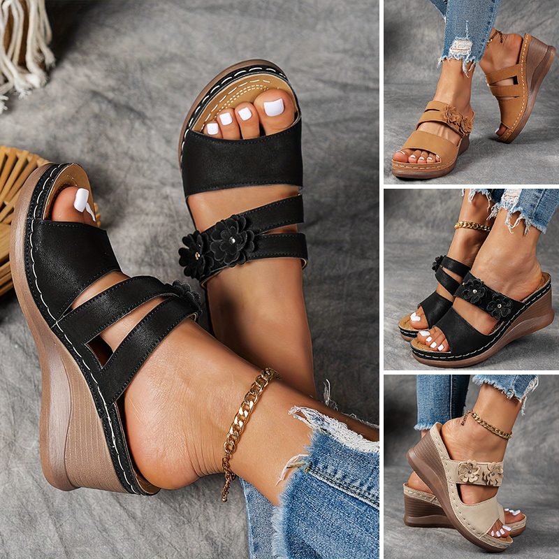 COMFORTABIL OPEN-TOE & WEDGE HEEL: Designul open-toe permite respirabilitatea, în timp ce călcâiul wedge oferă o ridicare elegantă și suport pentru arcadă pentru a purta toată ziua fără disconfort sau presiune.