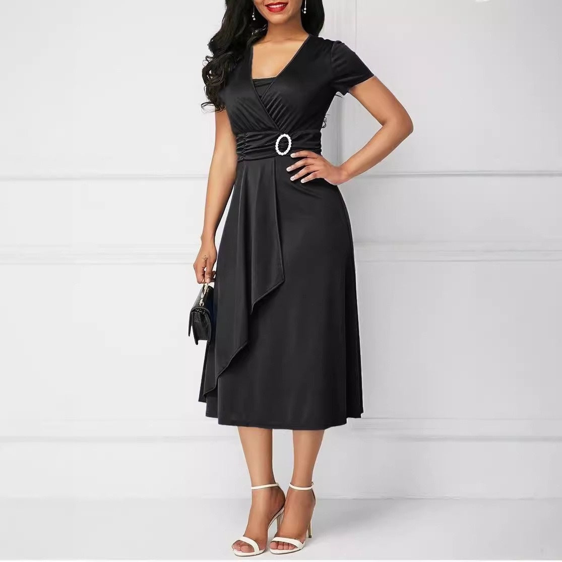 De la cocktail-uri la întâlniri de seară, această rochie șic este ușor de purtat și se asortează perfect cu tocuri și bijuterii.