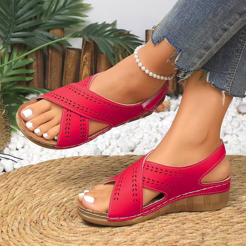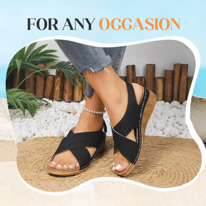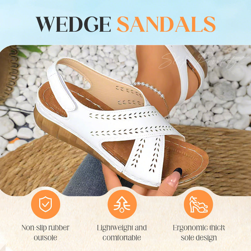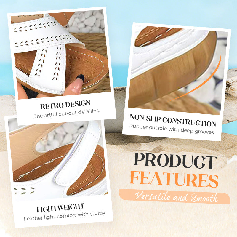 DESIGN RETRO TIMELESS: Îmbină fără efort farmecul vintage cu confortul modern, având o siluetă clasică cu pană care înalță orice ținută. Detaliile artistice decupate adaugă fler feminin, menținând în același timp suportul structural, ceea ce face aceste sandale perfecte pentru brunch-uri, întâlniri sau vineri casual la serviciu.