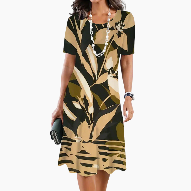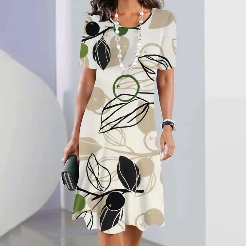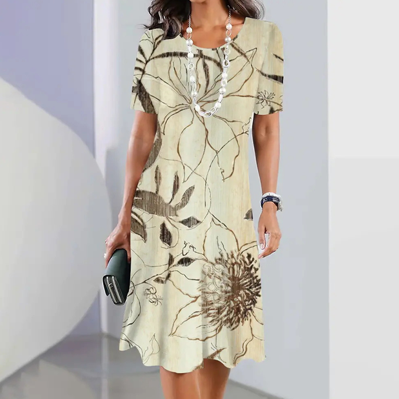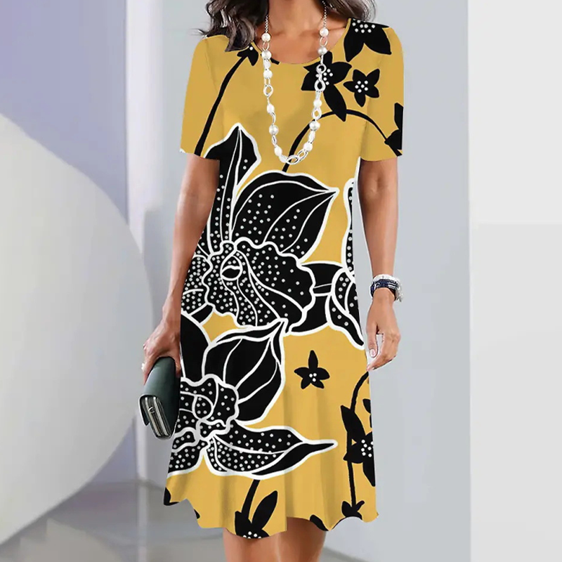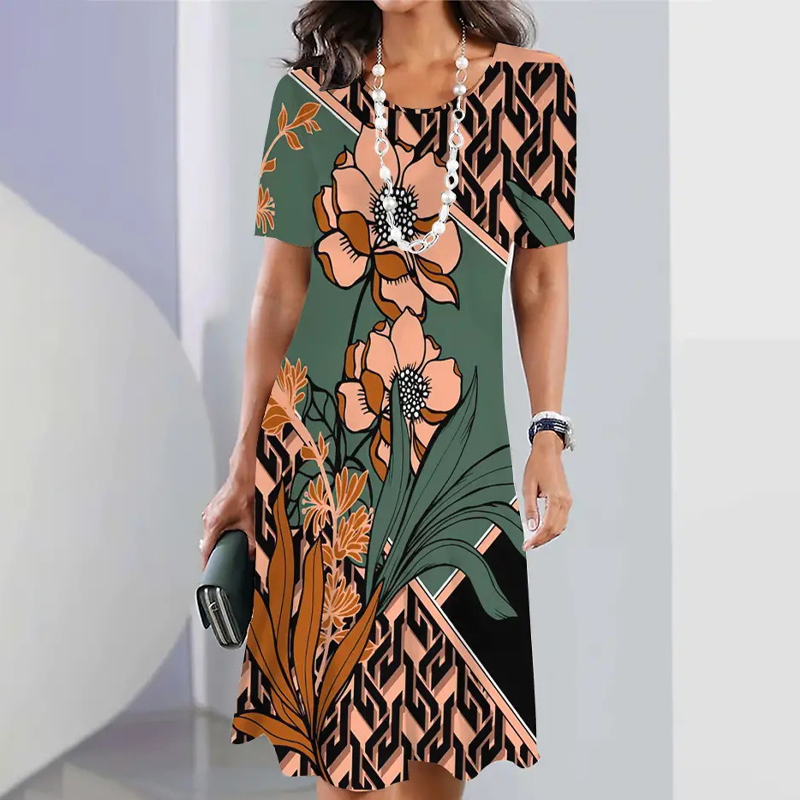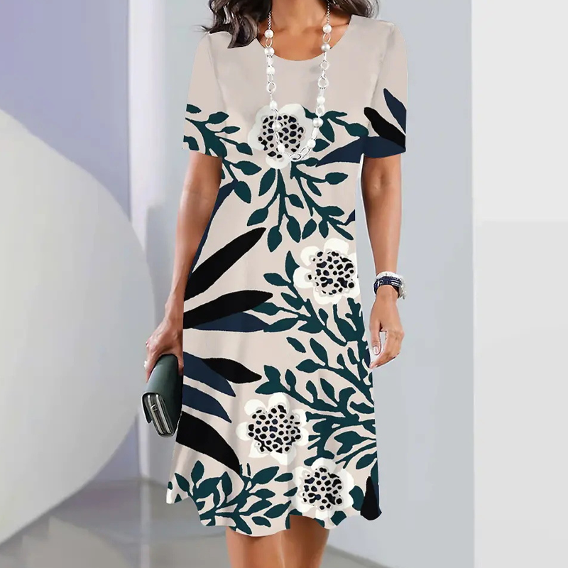 DESIGN ELEGANT DE IMPRIMEU - Rochia Midi Imprimată cu Decolteu Rotund pentru Femei se remarcă printr-un imprimeu floral rafinat și captivant, care adaugă o notă de eleganță garderobei tale. Stilul imprimatului se încadrează perfect în decolteul rotund simplu, pentru un look elegant și fără efort.