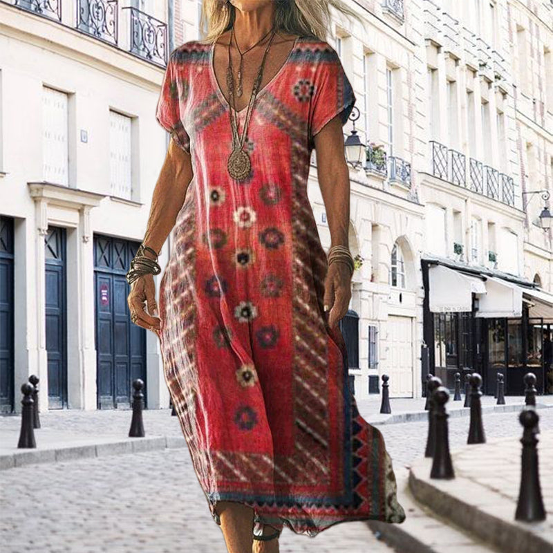 Package Include: 1 * Women's Printed V-Neck Short-Sleeve Long Dress
